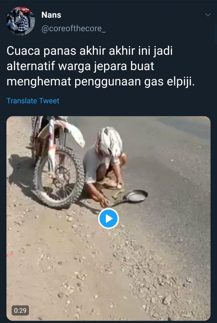 "Cuaca panas akhir akhir ini jadi alternatif warga jepara buat menghemat penggunaan gas elpiji," cuitnya.