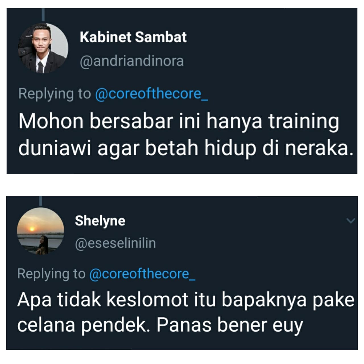 "Mohon bersabar ini hanya training duniawi agar betah hidup di neraka".