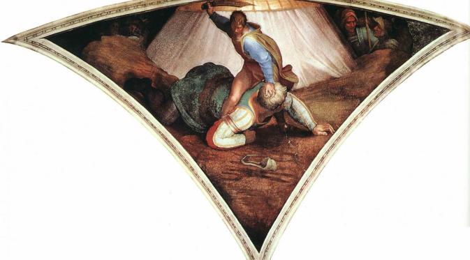 Pada dinding seberang, adegan menunjukkan Judith dan hambanya membawa kepala Jenderal Asyur, Holofernes membentuk huruf Ibrani chet yang berarti "mencintai kebaikan". Dilansir dari Telegraph, Michelangelo diyakini sempat mempelajari Yudaisme di Lorenzo de Medici, Florence.