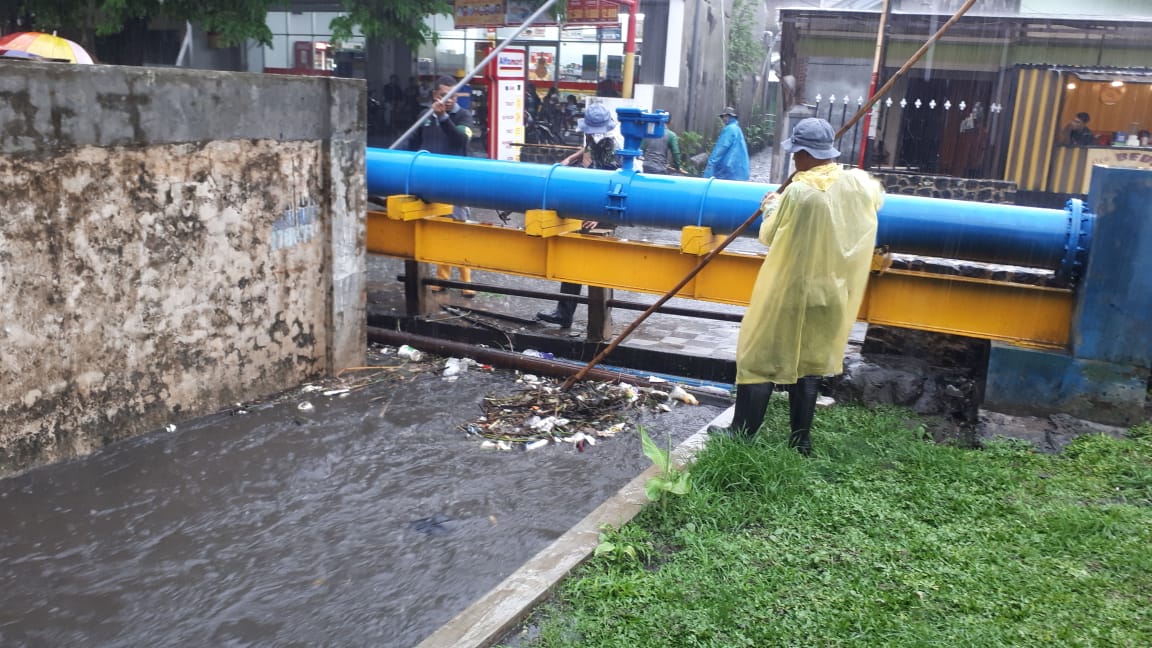 Tak hanya sekedar memantau, tim yang turun langsung saat hujan masih deras juga langsung membersihkan sampah di beberapa saluran air yang menjadi salah satu penyebab banjir. Sampah-sampah tersebut dikeruk dan diamankan untuk kemudian dibuang di tempat pembuangan akhir (TPA).