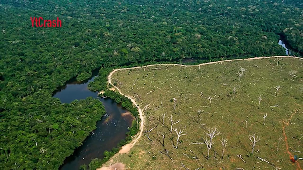 Sedangkan di perbatasan milik negara Brazil. Nampak lahan gersang, karena peralihan fungsi hutan.