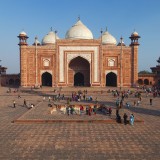 Tak ayal masjid yang juga makam dari istri Shah Jehan ini mampu memancarkan keindahan warna yang cantik sejak matahari terbit hingga matahari terbenam.