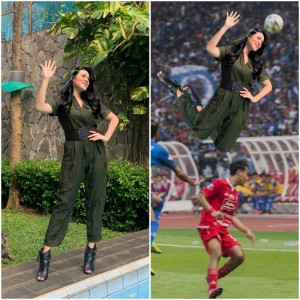 Dalam foto yang diunggah @rizkymuhr, Raisa seakan-akan ikut di sebuah pertandingan sepak bola dan sedang menyundul bola. "Yap, Raisa menyundul bola," tulisnya.