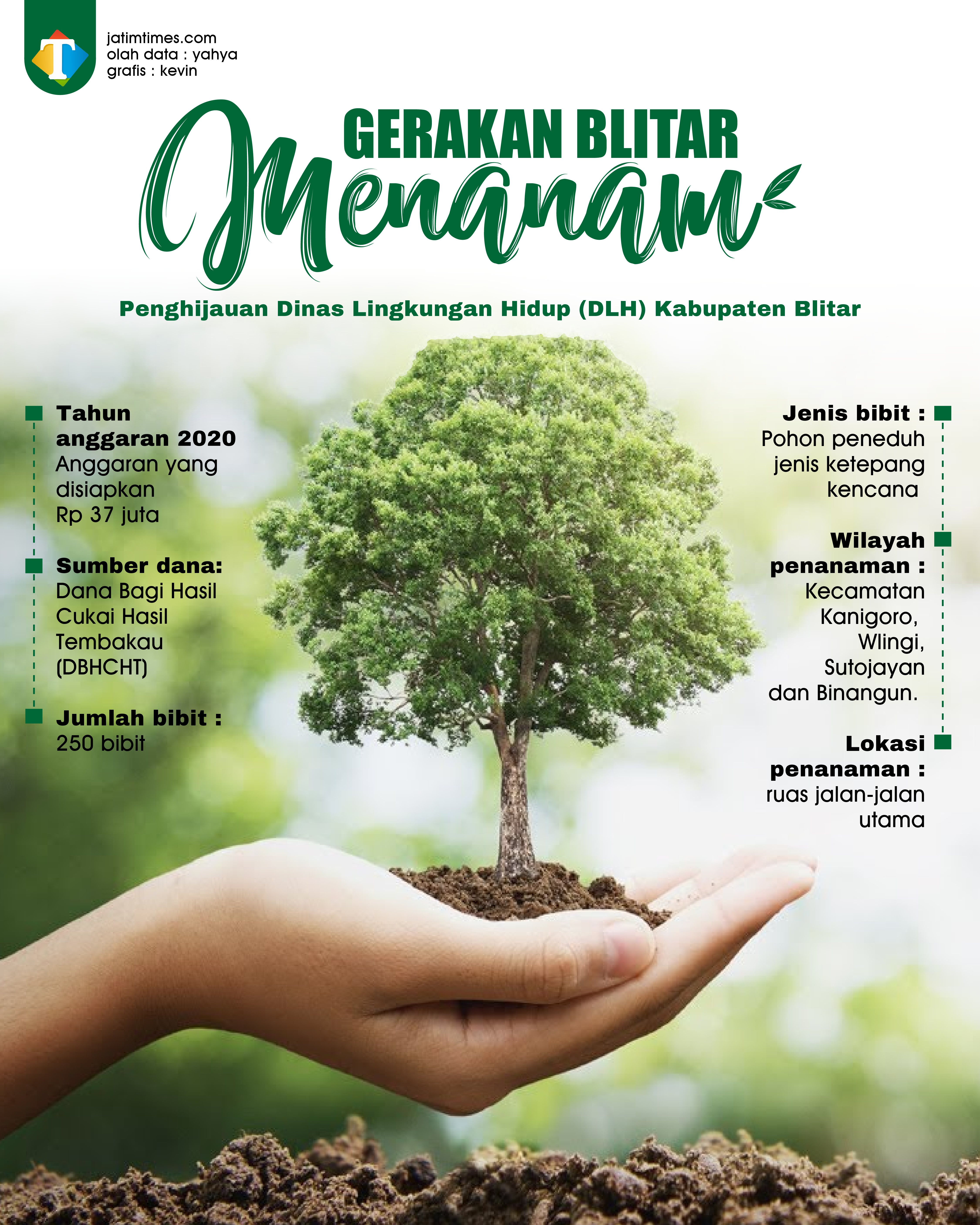 Dihubungi terpisah, Kepala Seksi Pengawasan Dampak Lingkungan DLH Kabupaten Blitar, Zainal Qolis mengungkapkan, penanaman pohon peneduh di tahun 2020 ini dianggarkan sekitar Rp 37 juta yang bersumber dari Dana Bagi Hasil Cukai Hasil Tembakau (DBHCHT). Total ada 250 bibit pohon peneduh jenis ketepeng kencana ditanam di beberapa kecamatan di antaranya Kanigoro, Wlingi, Sutojayan dan Binangun. Pohon peneduh tersebut ditanam di ruas jalan-jalan utama.