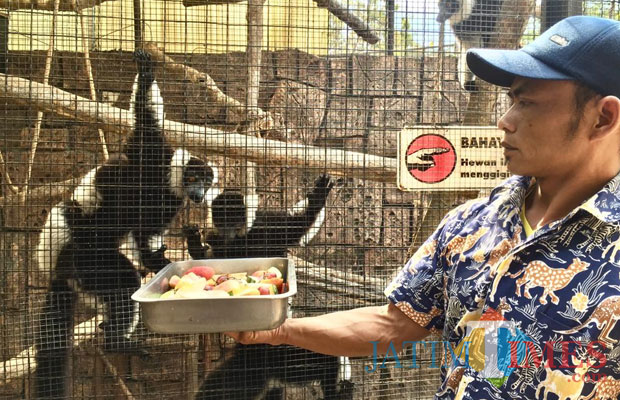 Hewan peliharaan Batu Secret Zoo Jawa Timur Park (JTP) 2 jenis lemur mendapat perlakuan istimewa pada hari ini Jumat (26/10/2018). Mereka bisa menikmati makanan favoritnya. Jika pada hari biasa, para lemur itu hanya makan buah-buahan seperti pisang, apel, dan wortel, namun Jumat ini menu makannya istimewa. Mereka mendapat tambahan makanan buah jenis melon, anggur, pir, dan apel merah.