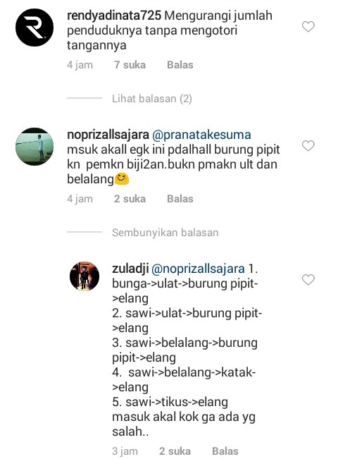 Noprizallsajara menanyakan, tentang hal tersebut. "Masuk akal enggak ini, padahal burung pipit pemakan biji-bijian. Bukan pemakan ulat dan belalang," tulisnya yang dibalas oleh akun Zuladji yang menjawab hal tersebut masuk akal. Zuladji menuliskan rantai makanan yang ada dalam peristiwa tersebut.