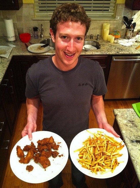 Zuckerberg memiliki hobi makan. Bukan cuma makan. Dirinya mencari dan memasak sendiri makanannya. Makanan favorit Zuckerberg antara lain lobster, ayam, babi, dan kambing. Uniknya, makanan-makanan tersebut ia cari sendiri, bahannya juga ia potong dan ia olah sendiri.