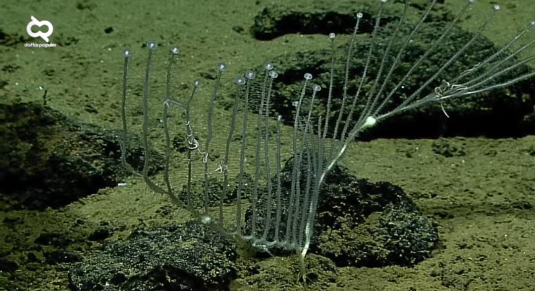 Ia hidup di lautan terdalam, menempel di dasar laut menggunakan rizoit serupa akar.