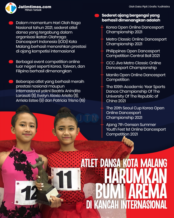 Ketua Umum IODI Kota Malang Inchie Indrawati mengatakan, setidaknya dalam tahun 2021 terdapat beberapa atlet dansa Kota Malang yang berprestasi di ajang kompetisi nasional maupun internasional.