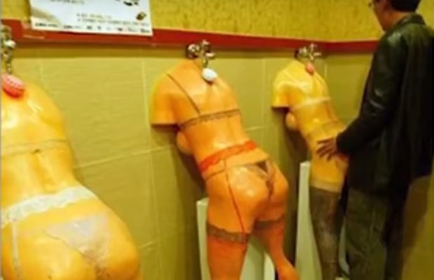 Di toilet satu ini dijamin lelaki yang mudah "greng" akan berfantasi liar. Dengan bentuk toilet berupa tubuh perempuan membelakangi dengan sedikit menunduk, tepat di bagian (maaf) pantatnya, Mr P para lelaki yang akan pipis terarah. Selain toilet yang merangsang imaji liar tersebut, wastafelnya pun berbentuk bagian kaki perempuan yang sedang menungging. Dijamin masuk di toilet ini akan membuat sensasi berbeda.