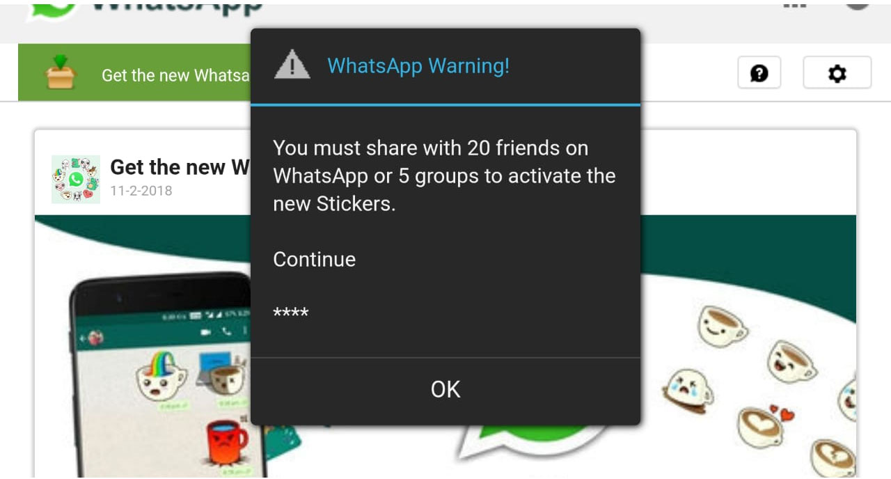 Rupanya, hal itulah yang dimanfaatkan oleh scammer, orang atau sekelompok orang yang menipu dengan cara licik melalui dunia maya. Mereka menebar link yang seolah-olah bisa mengaktifkan fitur stiker dengan mudah (lihat foto utama) "Hey, saya mengundang Anda untuk mengaktifkan stiker untuk WhatsApp. Klik di sini untuk aktivasi," demikian yang tertulis dalam bahasa Inggris.