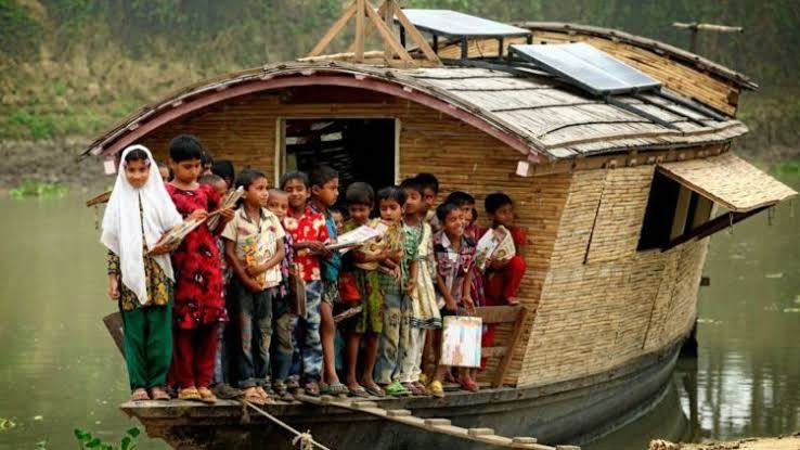 Pada akhirnya, sebuah organisasi nirlaba bernama Shidhulai Swanirvar Sangstha menghasilkan solusi yang brilian dengan mendirikan sekolah perahu. Mereka membangun rumah, pusat perawatan kesehatan, dan sekolah yang mengapung.
