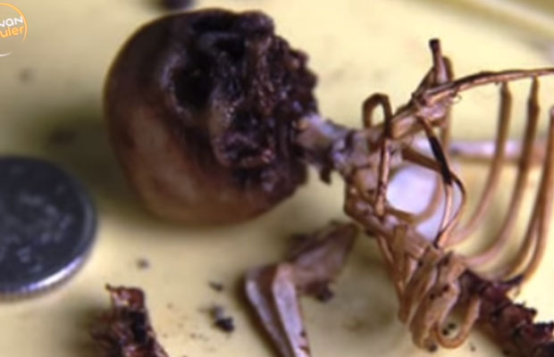 Foto tersebut menunjukkan kerangka humanoid seperti tengkorak, tulang rusuk serta tulang belakang. Pengirim foto tersebut diduga bekerja di Pusat Penyelamatan Burung, yang salah satu tugasnya adalah memeriksa sarang burung yang terancam punah untuk mencegah pencurian telur langka oleh kolektor.