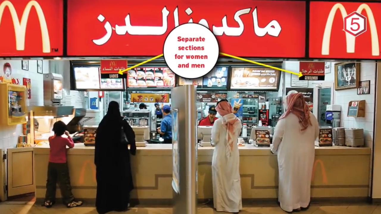 Hal itu juga berlaku di tempat wisata, rumah makan, dan transportasi. Biasanya, bagi pria dan wanita, selalu dibedakan tempatnya. Karena dasar inilah, perusahaan Barat yang membuka bisnisnya di Arab Saudi mau tidak mau harus menuruti peraturan tersebut jika tidak ingin kehilangan segmen pasar. Meski sempat mendapatkan kecaman, nyatanya pemerintah di sana sepertinya memilih untuk tidak menggubris kritikan atas kebijakan tersebut.