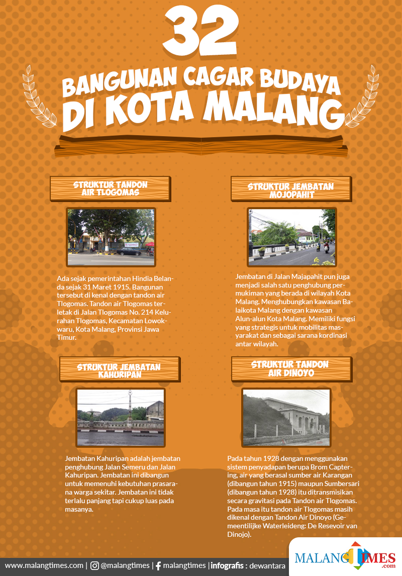 Sebanyak 32 bangunan itu, lanjut Sutiaji, belum merupakan total bangunan bernilai sejarah di Kota Malang. Dia menginstruksikan pada Dinas Kebudayaan dan Pariwisata (Disbudpar) Kota Malang untuk terus menginventarisasi bangunan-bangunan kuno yang masih berdiri.