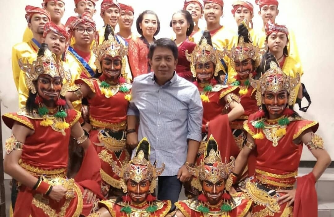 Kepala Disparbud Kabupaten Malang Made Arya Wedanthara bersama para penari