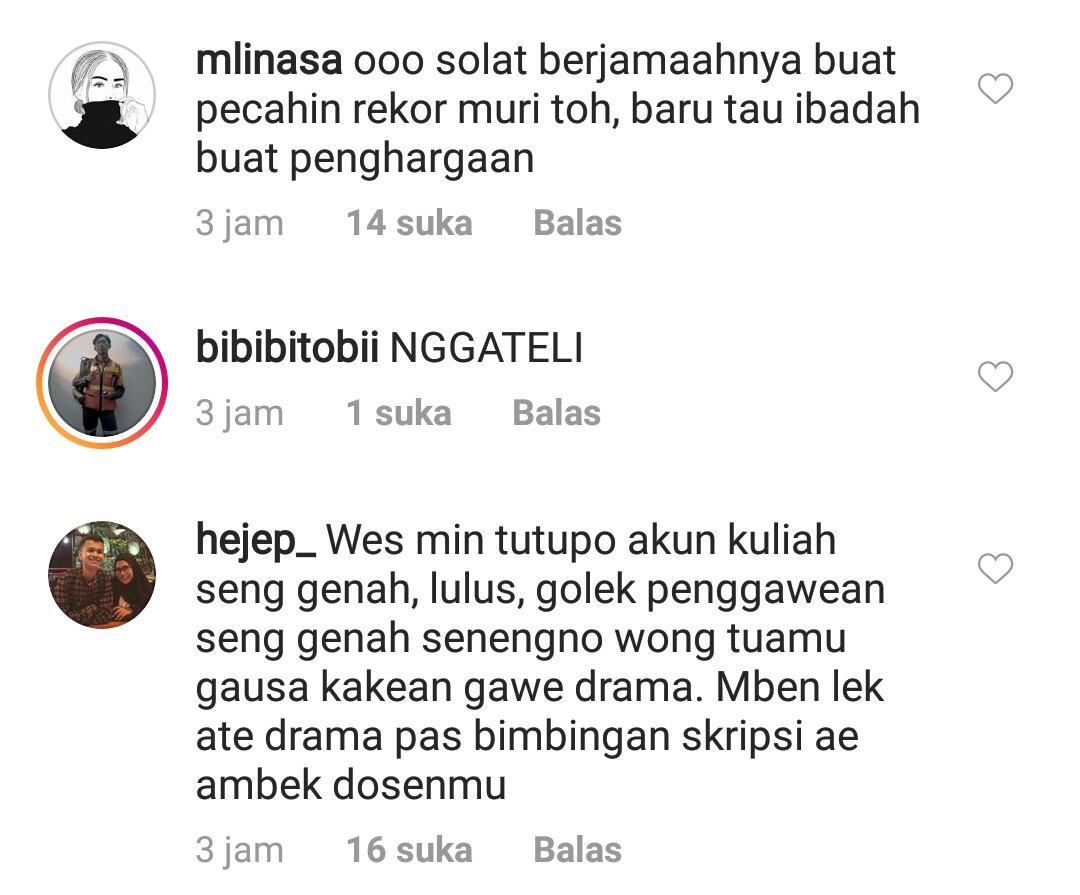 Bahkan, akun Instagram Masjid Raden Patah UB pun juga ikut berkomentar dan memberi klarifikasi lantaran terdapat pula unggahan foto mahasiswa baru yang salat berjamaah di masjid tersebut.