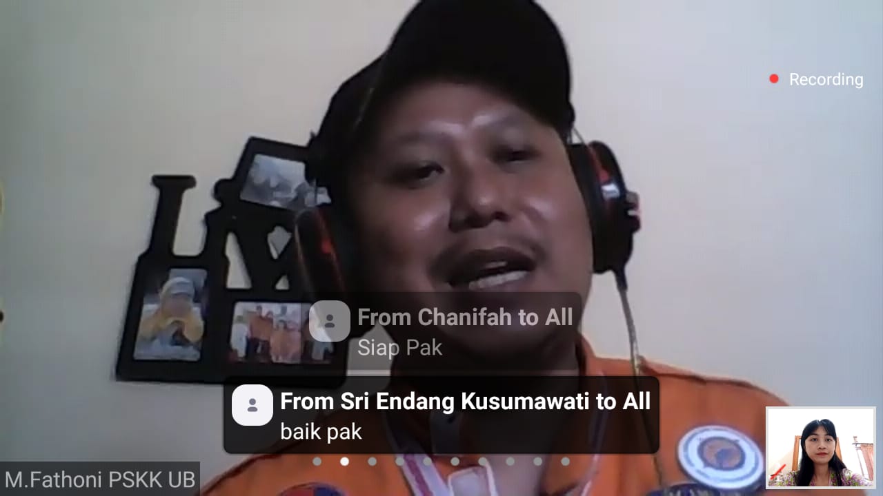 Fathoni menjadi salah satu narasumber dalam Webinar 2020 PSKK UB (Pusat Studi Kebumian dan Kebencanaan Univeritas Brawijaya) Sekolah Relawan Series yang bekerja sama dengan media online berjejaring MalangTIMES.com, Sabtu (9/5/2020).