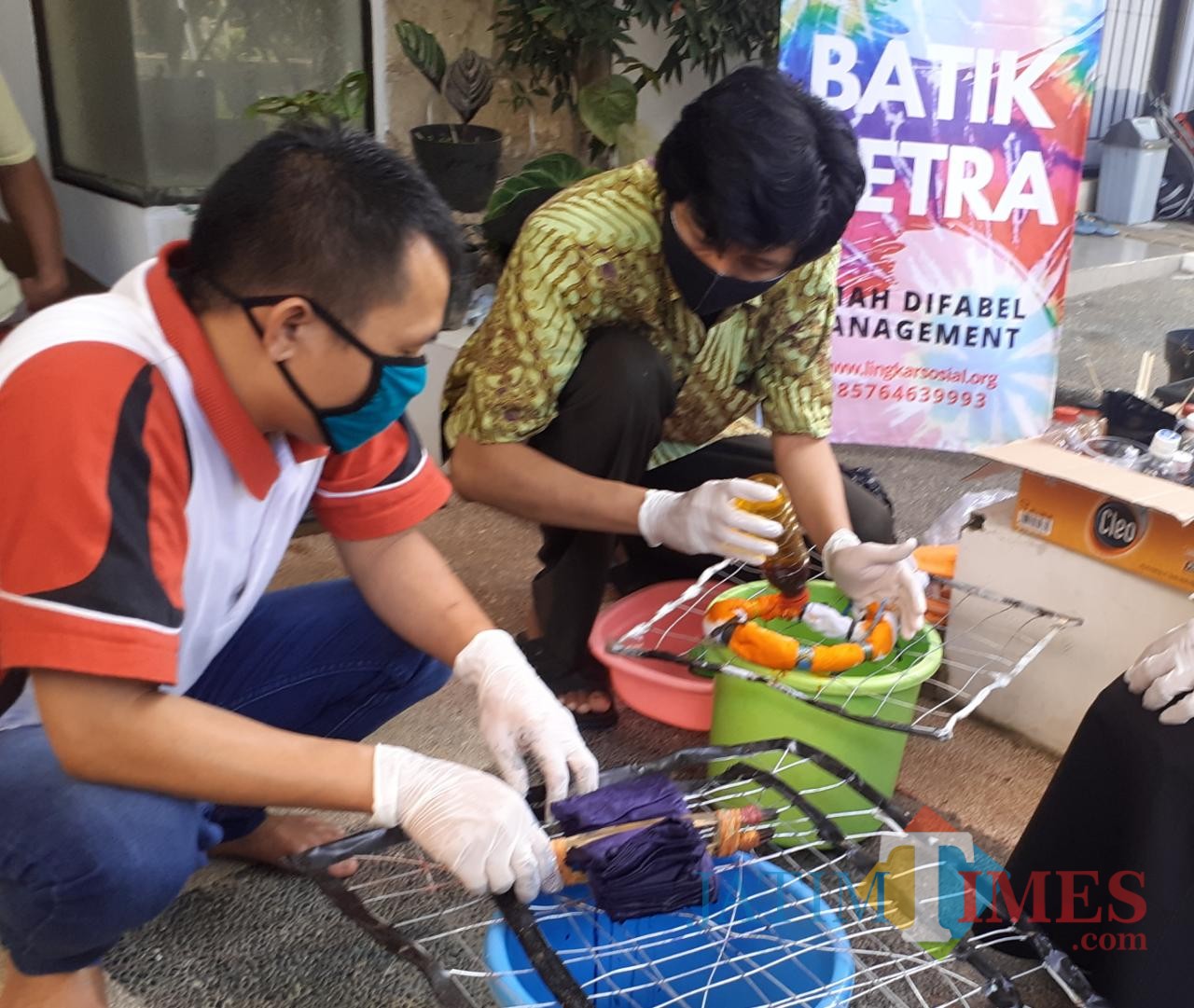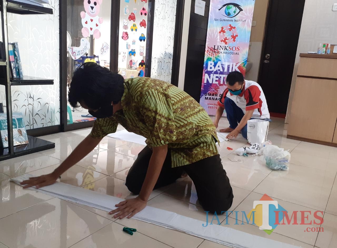 Ditemui MalangTIMES di Omah Difabel II, yang berada di kawasan Perumahan Puncak Tidar AE 40 Kota Malang, ia bersama salah satu rekannya mempraktikkan cara proses dari pembuatan batik yang dibuat.