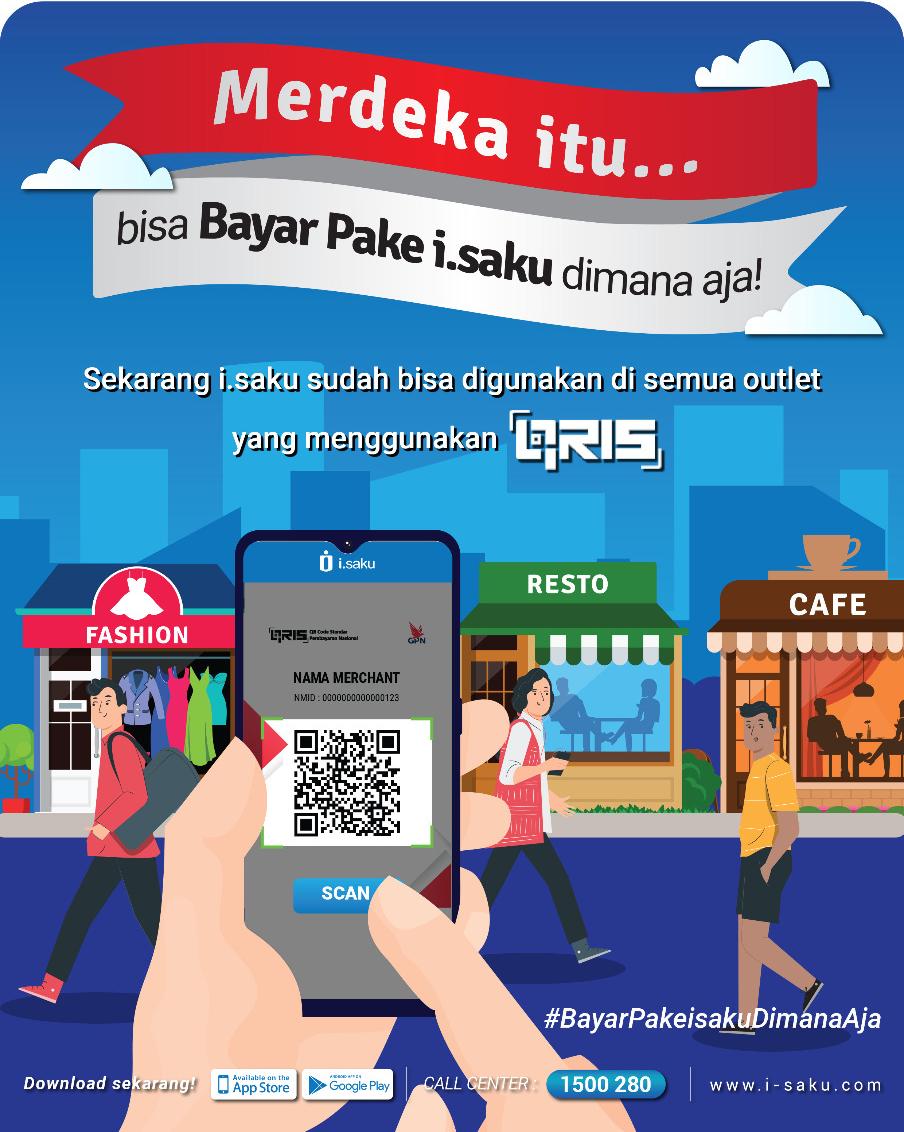 Di hari kemerdekaan ini, Indomaret juga mengembangkan sistem pembayaran i.saku di semua Merchant yang menggunakan QRIS.