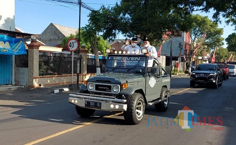 MALANGTIMES - Bakal pasangan calon (Bapaslon) Bupati dan Wakil Bupati Malang, Sanusi-Didik Gatot Subroto (SanDi) hadir di Kantor KPU (Komisi Pemilihan Umum). Mengendarai mobil jip berwarna abu-abu dengan atap terbuka SanDi mendatangi KPU untuk melakukan pendaftaran Calon Bupati dan Wakil Bupati Malang.