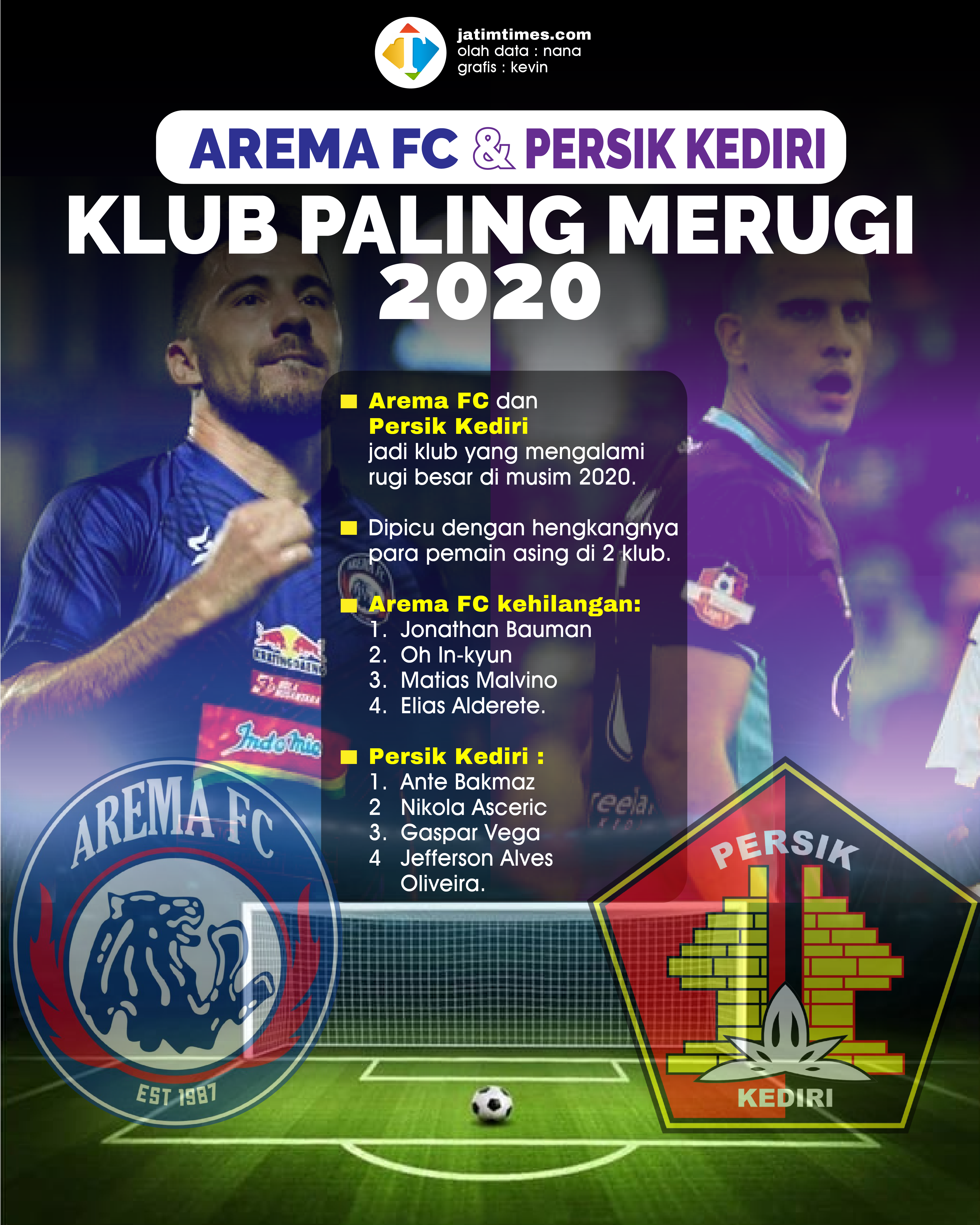 MALANGTIMES - Arema FC dan Persik Kediri menjadi klub yang paling apes pada kompetisi Liga 1 musim 2020. Betapa tidak? Semua pemain asing yang dimiliki hengkang akibat ketidakjelasan kompetisi.