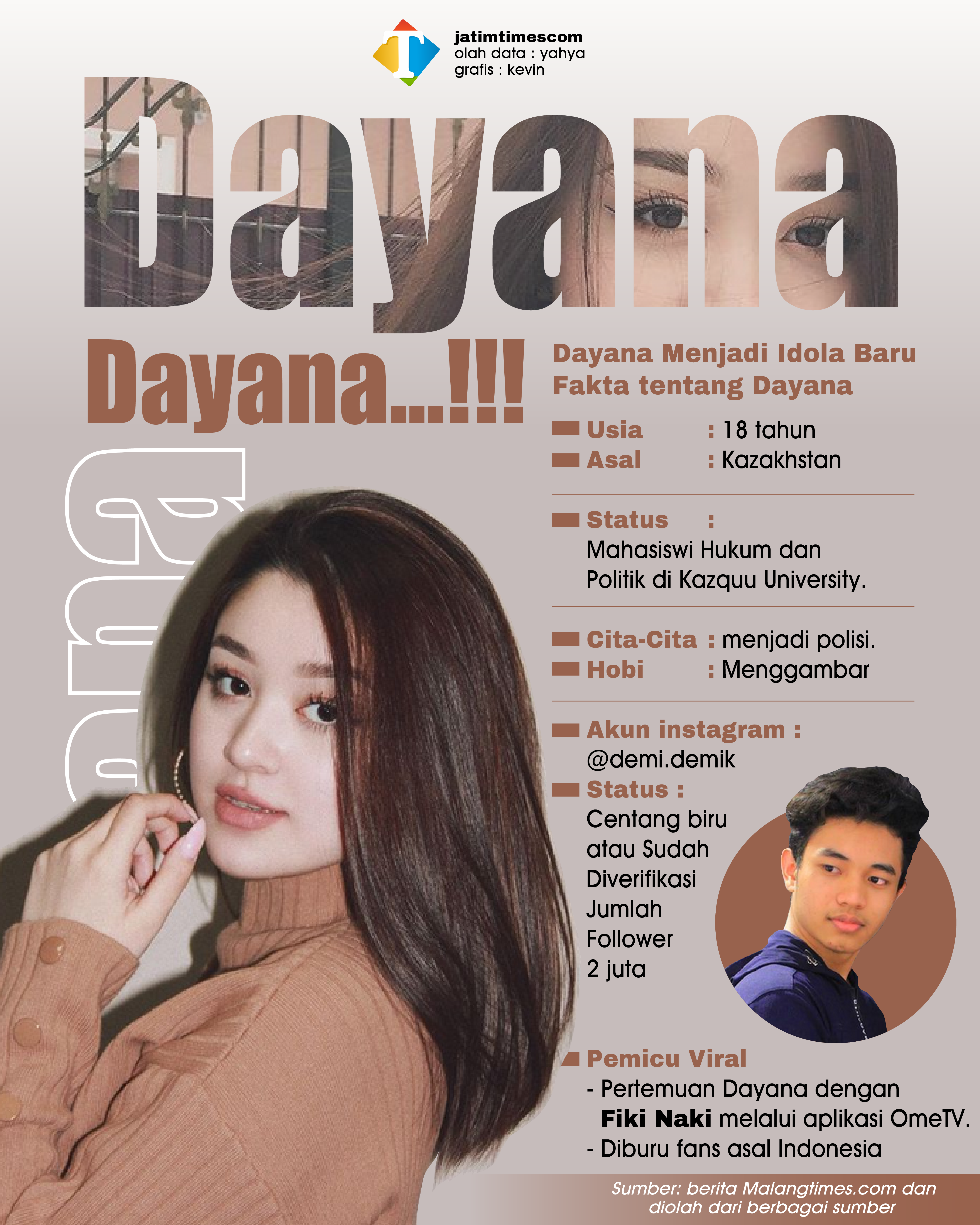 INDONESIATIMES - Dayana baru saja bertemu dengan 2 fans wanita asal Indonesia yang tinggal di Kazakhstan. Kini, Dayana menjadi idola baru bagi masyarakat sejak pertemuannya dengan pria asal Indonesia bernama Fiki Naki melalui aplikasi OmeTV.