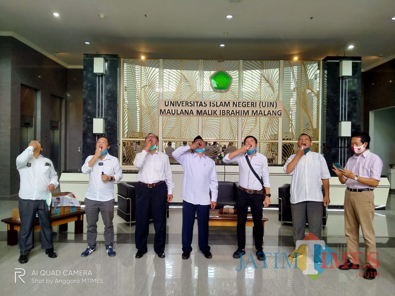 Sementara itu, dalam penyerahan tersebut, Rektor UIN MALIKI Malang juga didampingi oleh Wakil Rektor Bidang Kemahasiswaan dan Kerjasama, Dr Israqunnajah dan juga pejabat UIN MALIKI lainnya.